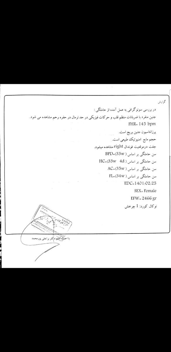 در سونوگرافی شما تمام موارد بررسی شده شامل وضعیت جنین. جفت و حجم مایع آمنیوتیک همگی طبیعی بوده و مشکلی ندارد. در مورد بند ناف هم اگرچه یک دور به دور گردن دلبندتان پیچیده شده است اما از آنجا که بند ناف اندامی نرم و بلند است این پیچش ها اغلب مشکل ایجاد نمی کنند تنها کاری که باید انجام دهید این است که با دقت حرکات دلبندتان را پایش کنید تا اگر به صورت غیر طبیعی افزایش یا کاهش پیدا کرد حتماً در اسرع وقت به بیمارستان مراجعه نمایید به علاوه تست NST بهتر است هفتگی انجام شده و سونوگرافی جهت اطمینان دو هفته دیگر تکرار انجام شود. مجموعا فعلا این پیچش خطرناک نیست و حتی ممکن است حتی حین حرکات جنین تا انتهای بارداری از دور گردن باز شود، پس نگران نباشید 💖