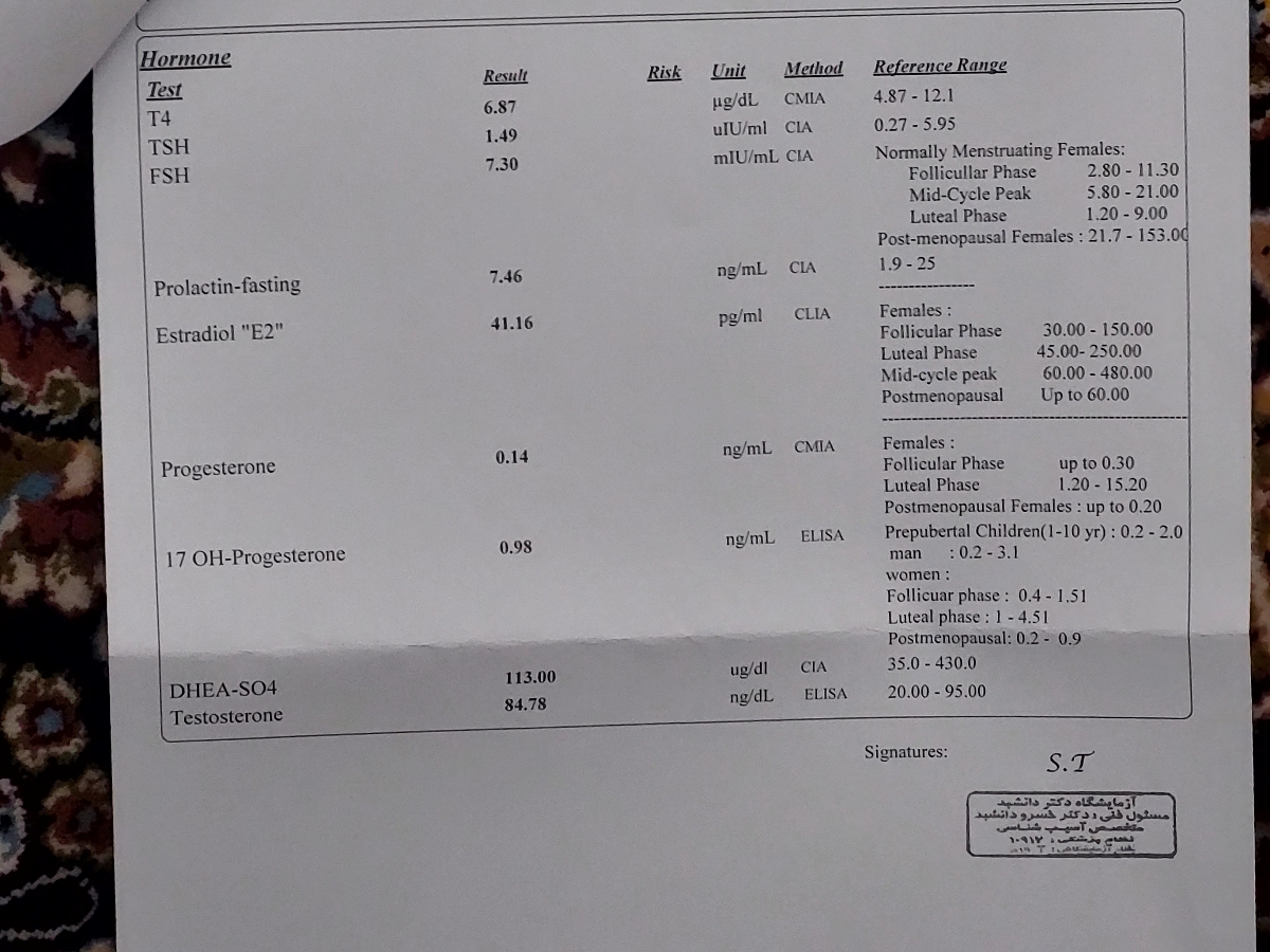 اینم آزمایش هورمون و تیروئید که هفته قبل انجام دادن