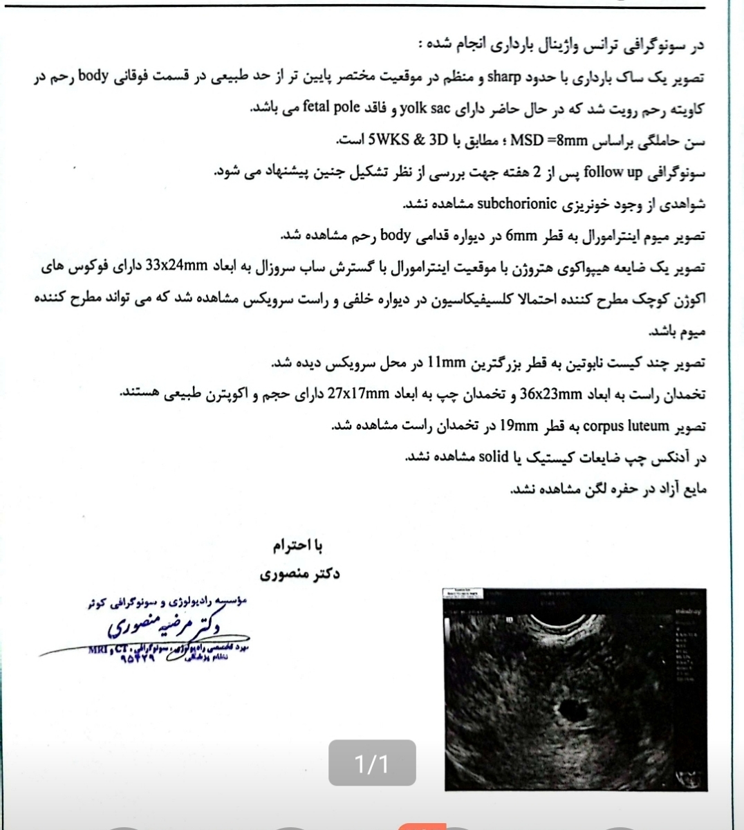 سلام وقت بخیر سونو بعدی انجام شد لطفا چک کنید