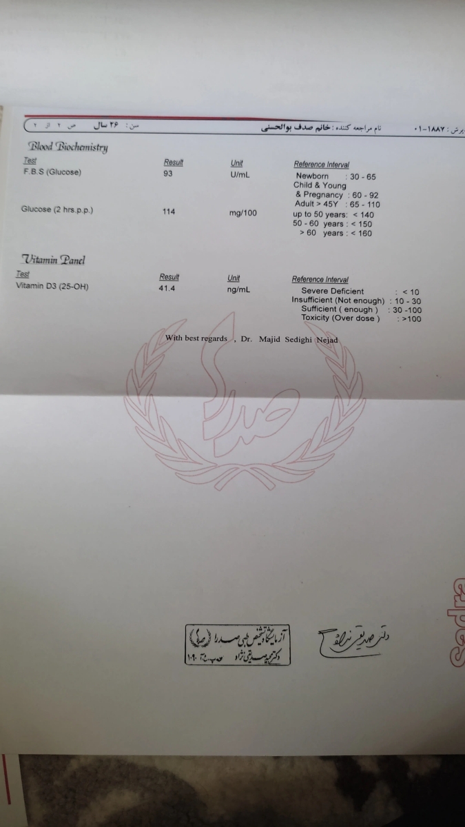 سلام به روی ماهتون مامان جان کم خونی دارید دوز مکمل آهن توسط پزشکتان تنظیم شود و مواد غذایی غنی از آهن به جز جگر را بیشتر مصرف کنید و به هماتولوژیست مراجعه کنید نگران نباشید صرفا مکمل مناسب لازم است بعد این هروقت آزمایش دادید حتما سطح فریتین یعنی آهن ذخیره خون چک گردد قند ناشتا دقیقا لب مرز است رژیم غذایی باید اصلاح شود تحت نظر متخصص تغذیه و غدد باشید باید رژیم بگیرید بعد آزمایش تکرار گردد تا درمورد روال درمانی تصمیم گیری شود