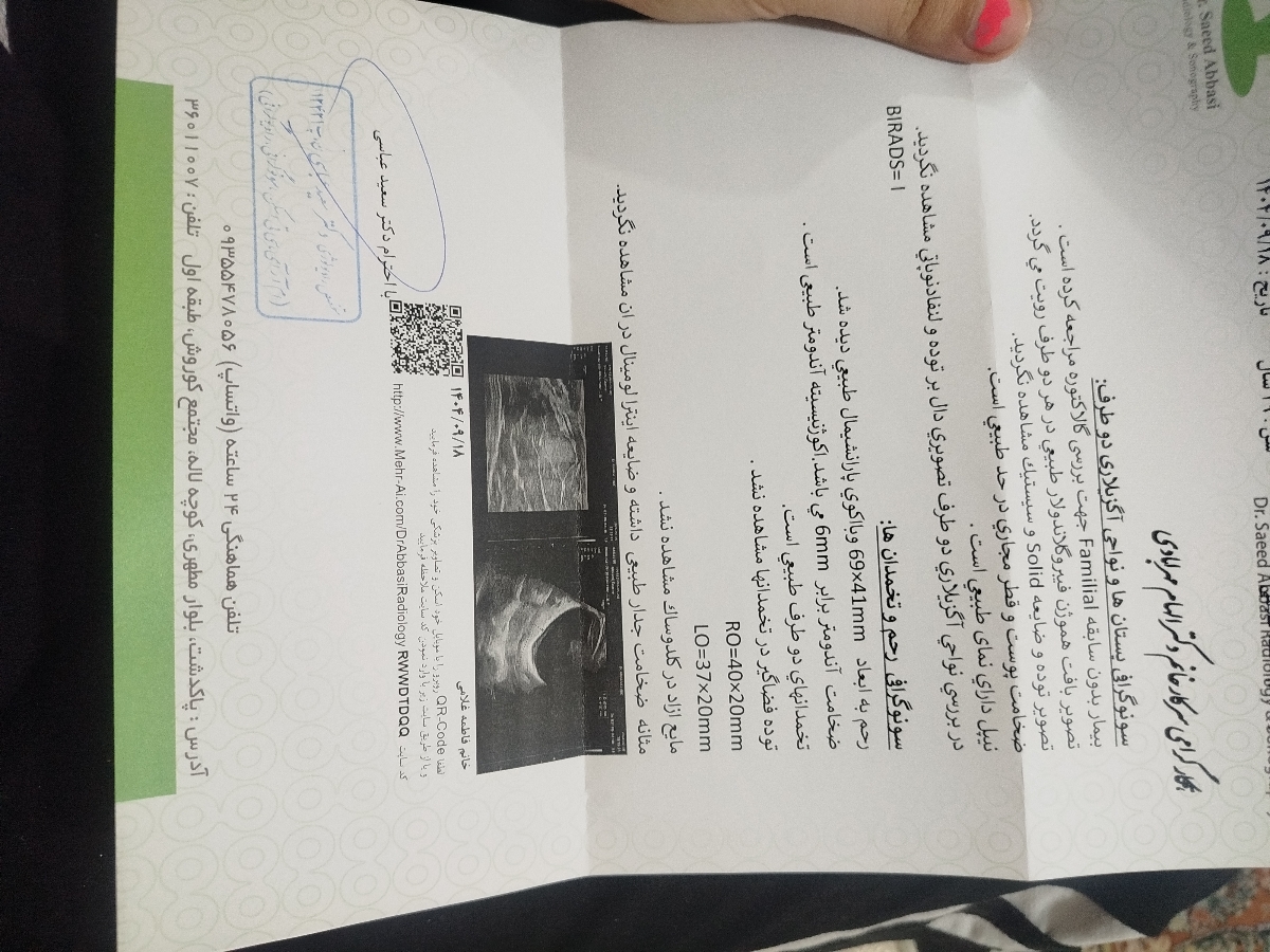 سلامخانم دکتر ودوستان عزیزجواب سونوی منو میشه ببینیدخوبه