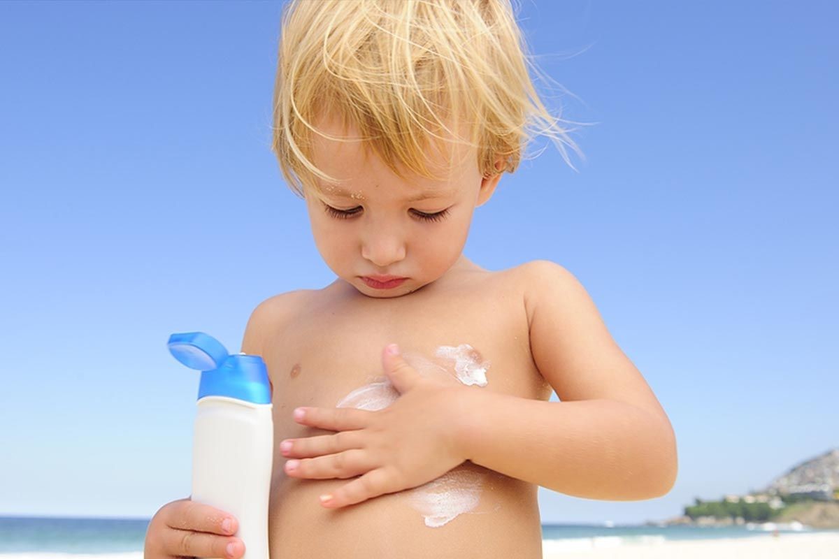 ضد آفتاب کودکان باید طیف گسترده باشد و از پوست در برابر UVB و UVA محافظت کند. حداقل SPF 30 مورد نظر برای این محصول است و باید هر دو ساعت یک بار تجدید شود. اگر کودک مدام در معرض نور خورشید قرار دارد و در استخر، پارک یا دریا است از محصولات ضد آب استفاده کنید. ضد آفتاب‌های مقاوم در برابر آب شیمیایی اند و اگر مخصوص کودکان فرموله شده باشند ضرر کمی دارند.